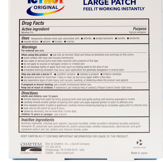 ICY HOT BACK, PATCH XLG (3/BX)