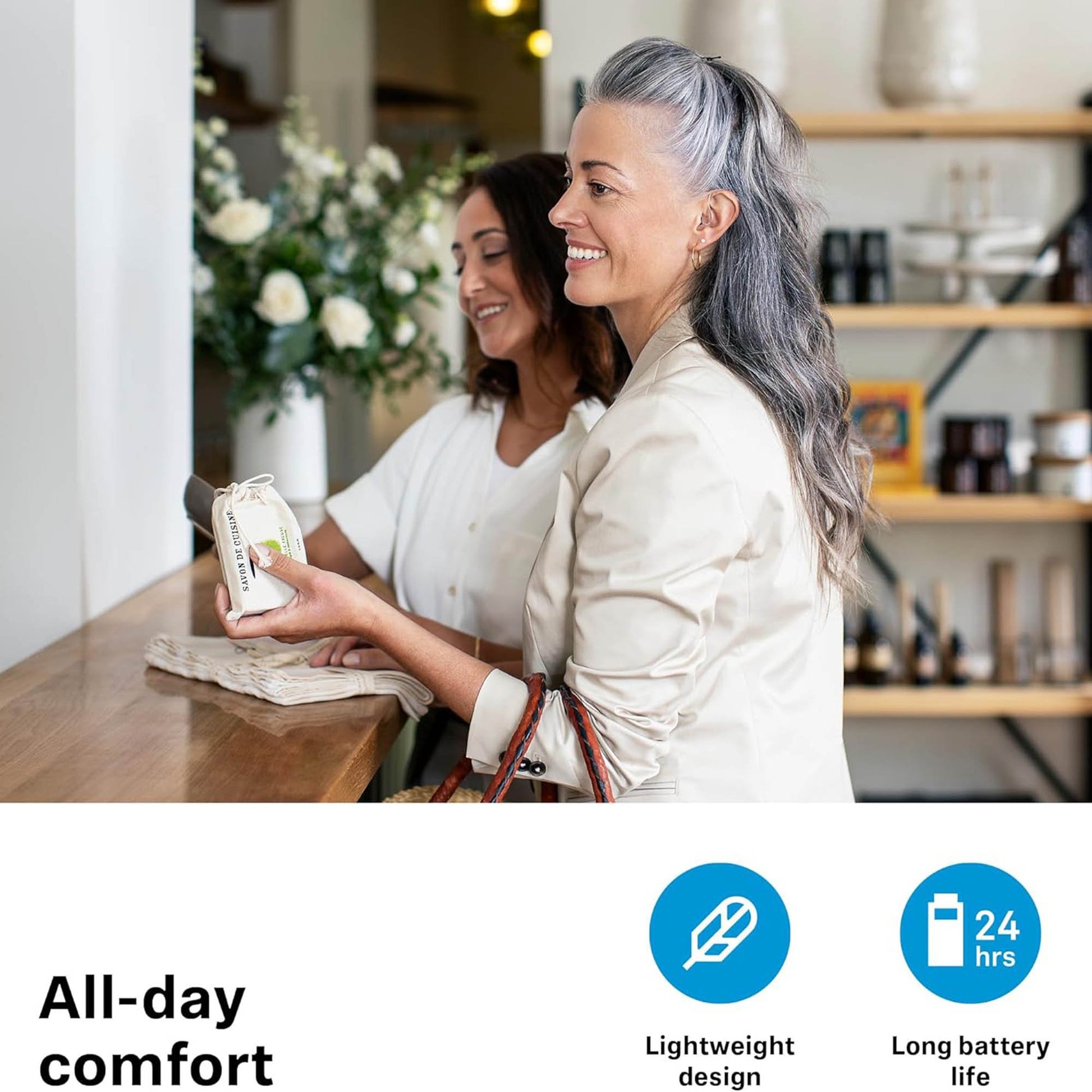 - Recharge and enjoy up to 21 hours of continuous hearing support, keeping you connected from morning 'til night.