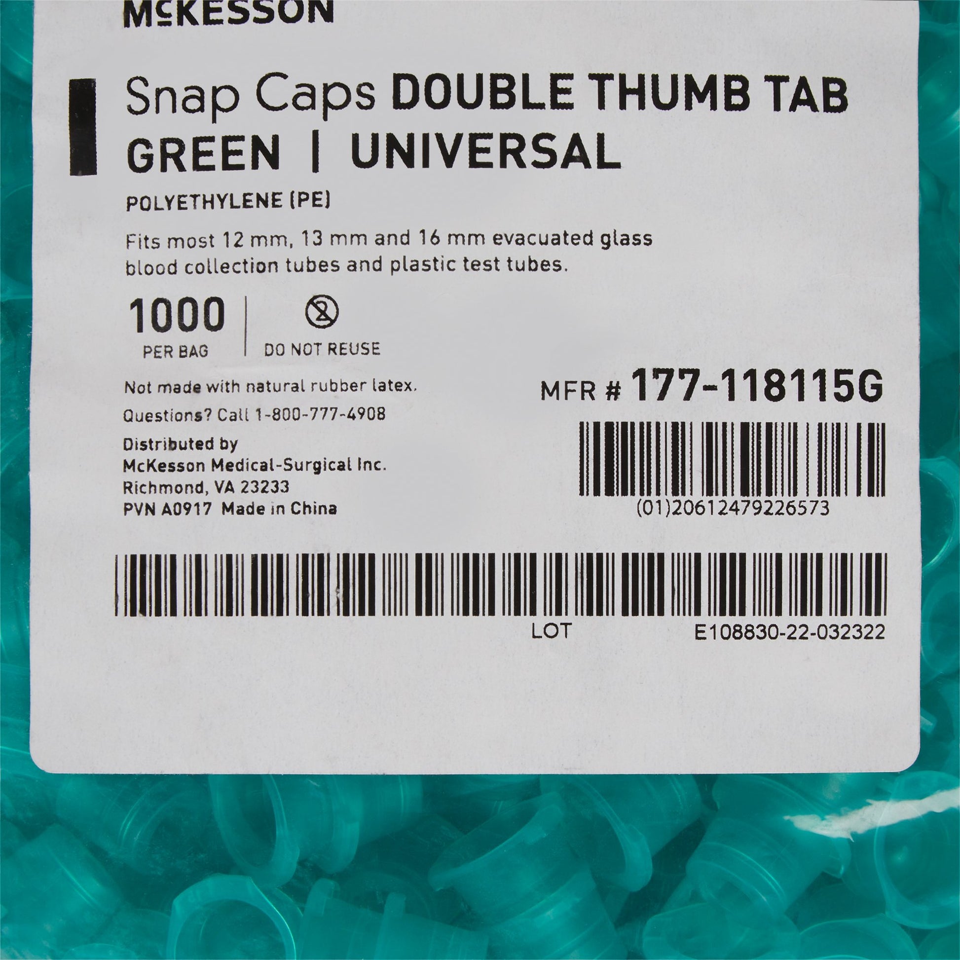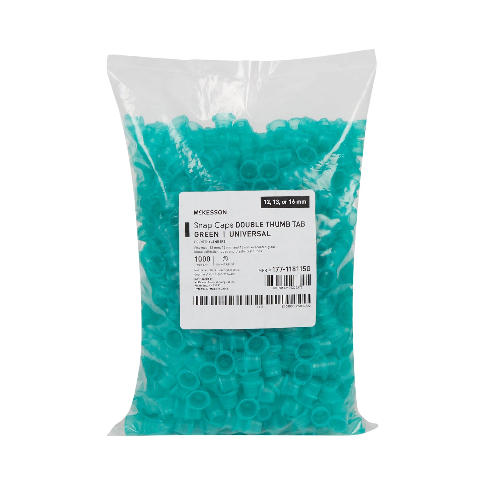 - There are 1,000 green snap cap tube closures in a bag.