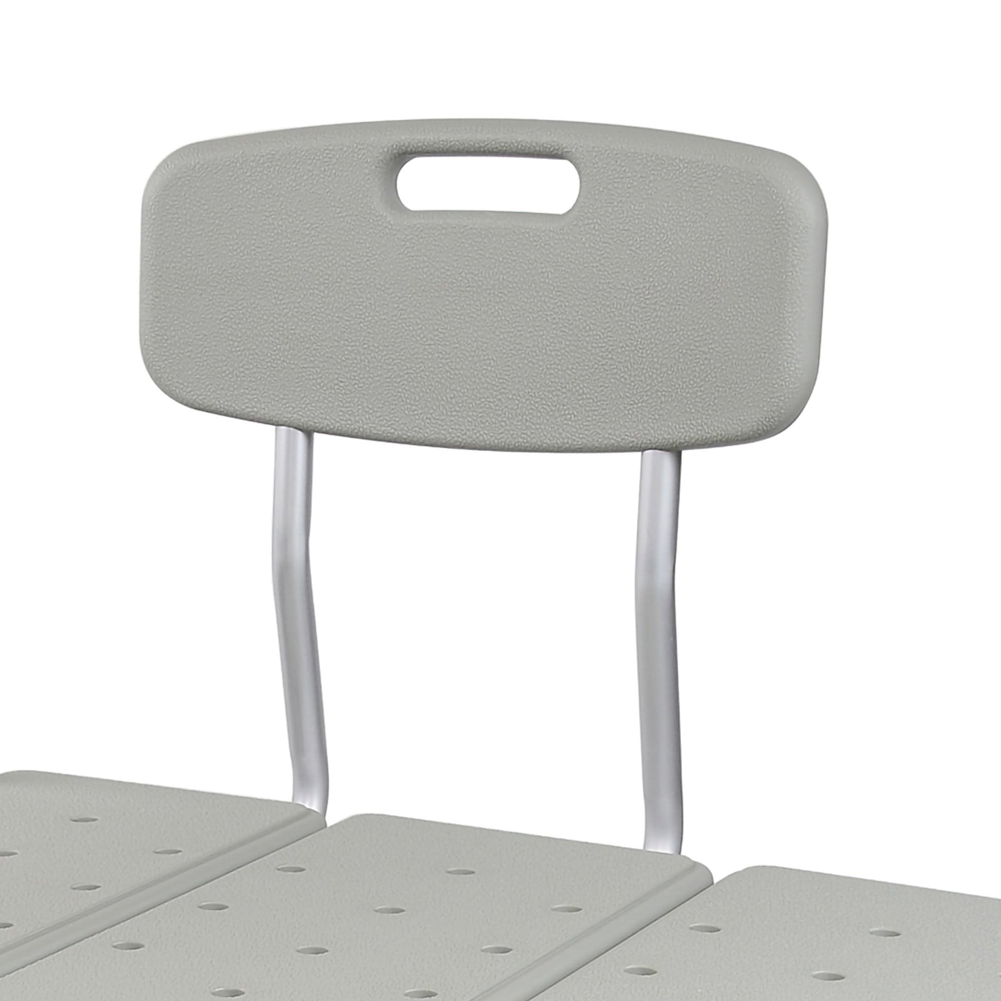 - Extended bench design and slip-resistant tips provide solution for safer transfer from a sitting position into and out of tub.