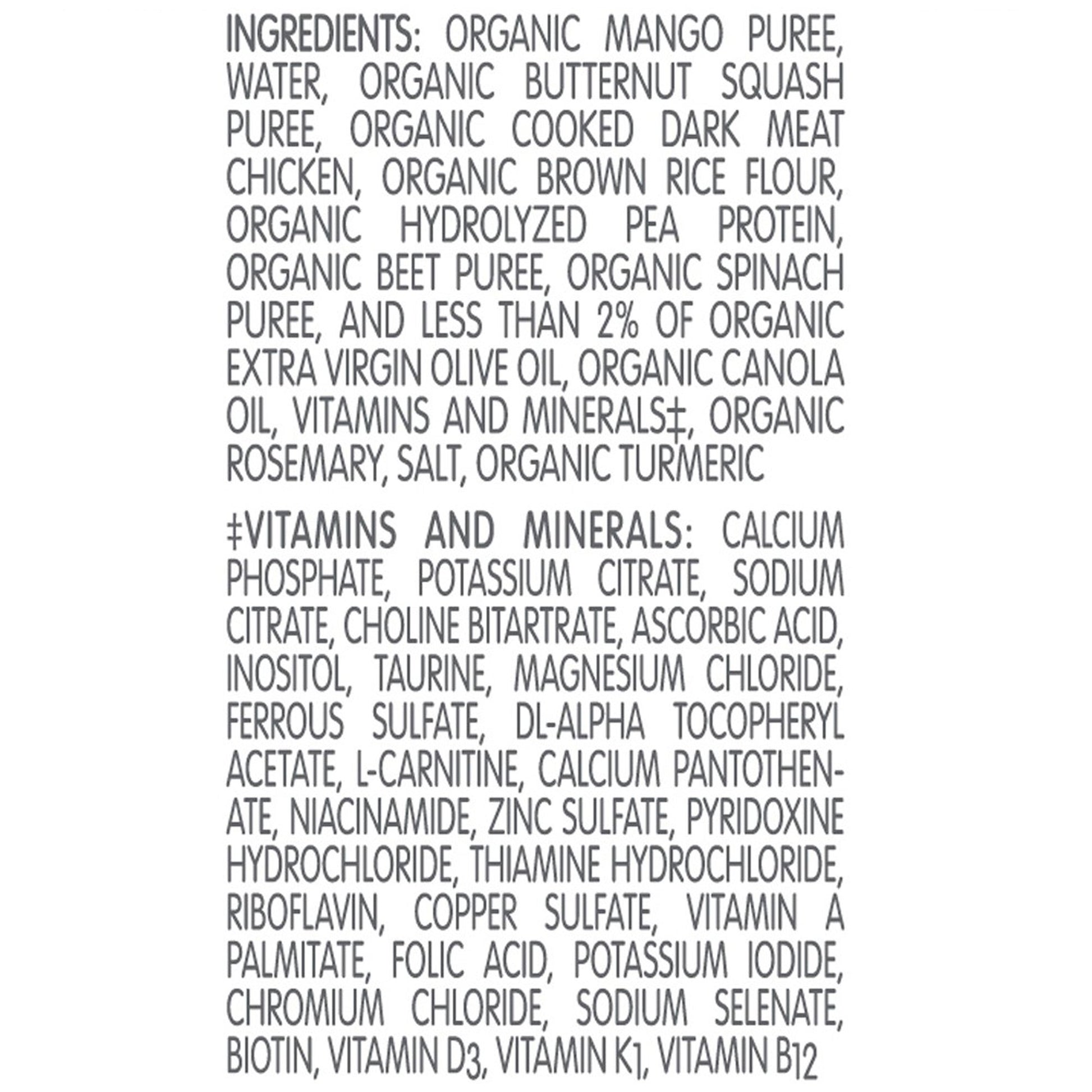 - It's a nutritious blend of whole foods such as chicken, brown rice, fruits, vegetables.
