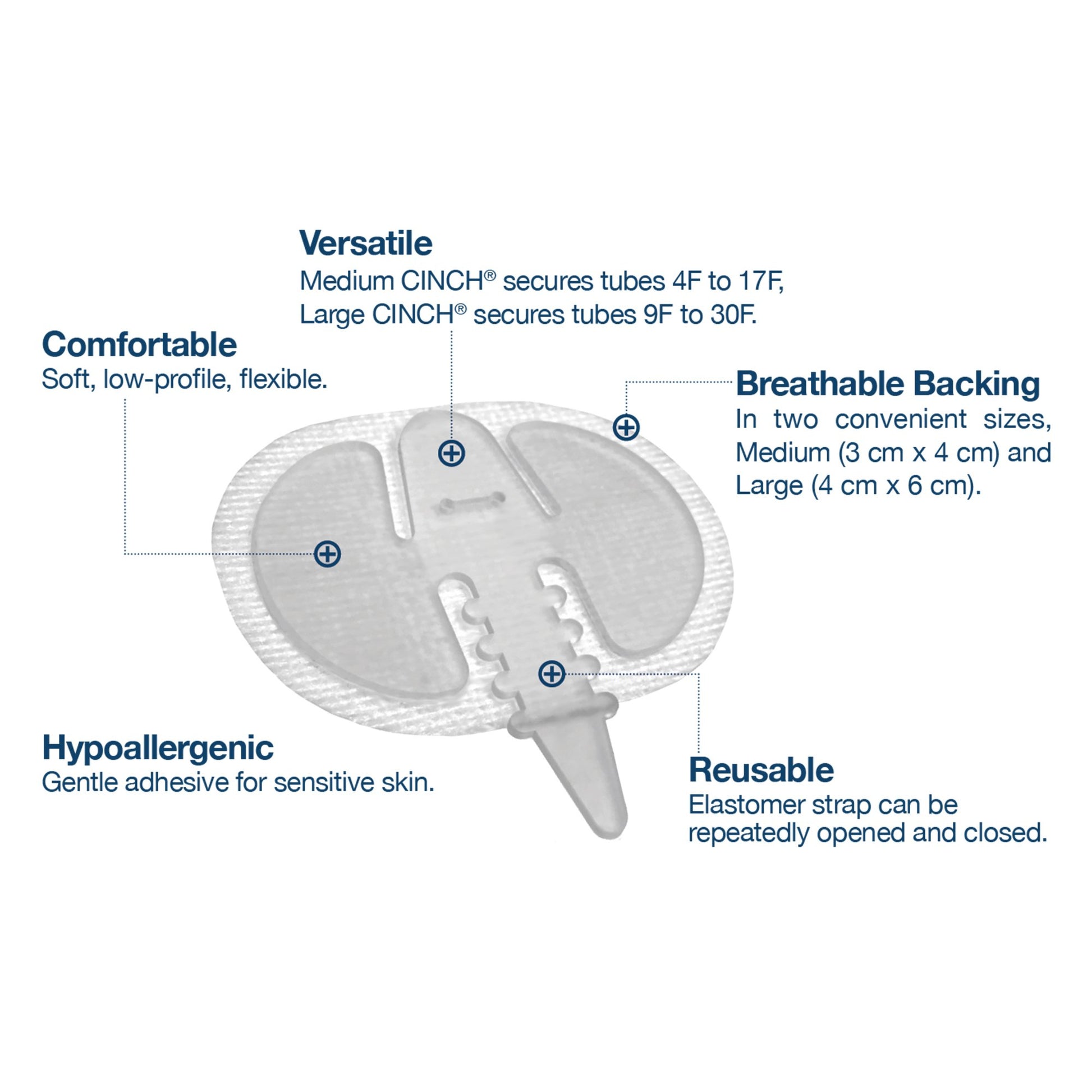 - Cinch promotes the health, safety and comfort of patients by securely anchoring medical tubes while relieving stress and strain at insertion points.