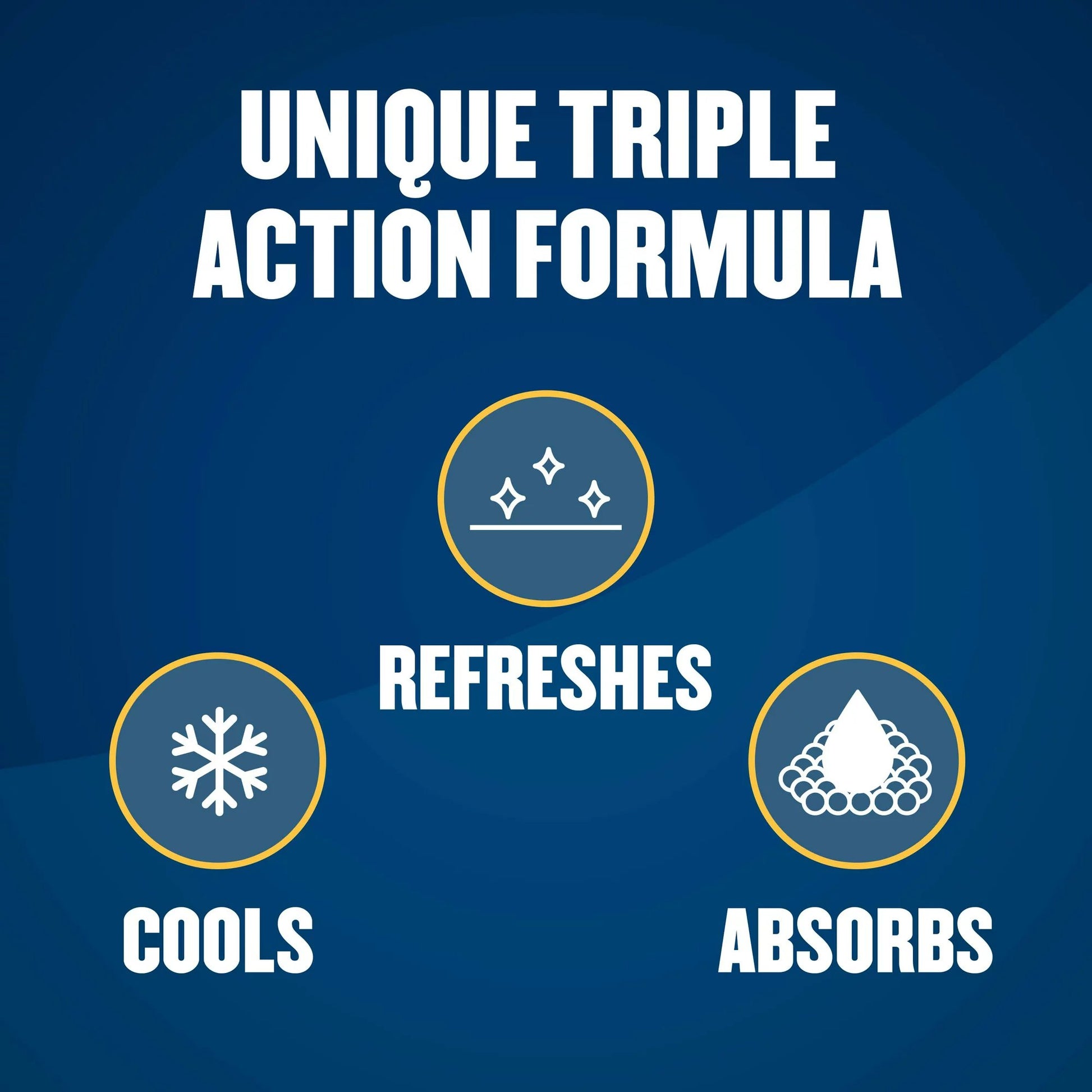 - Triple-action solution: cools, absorbs moisture, and refreshes
