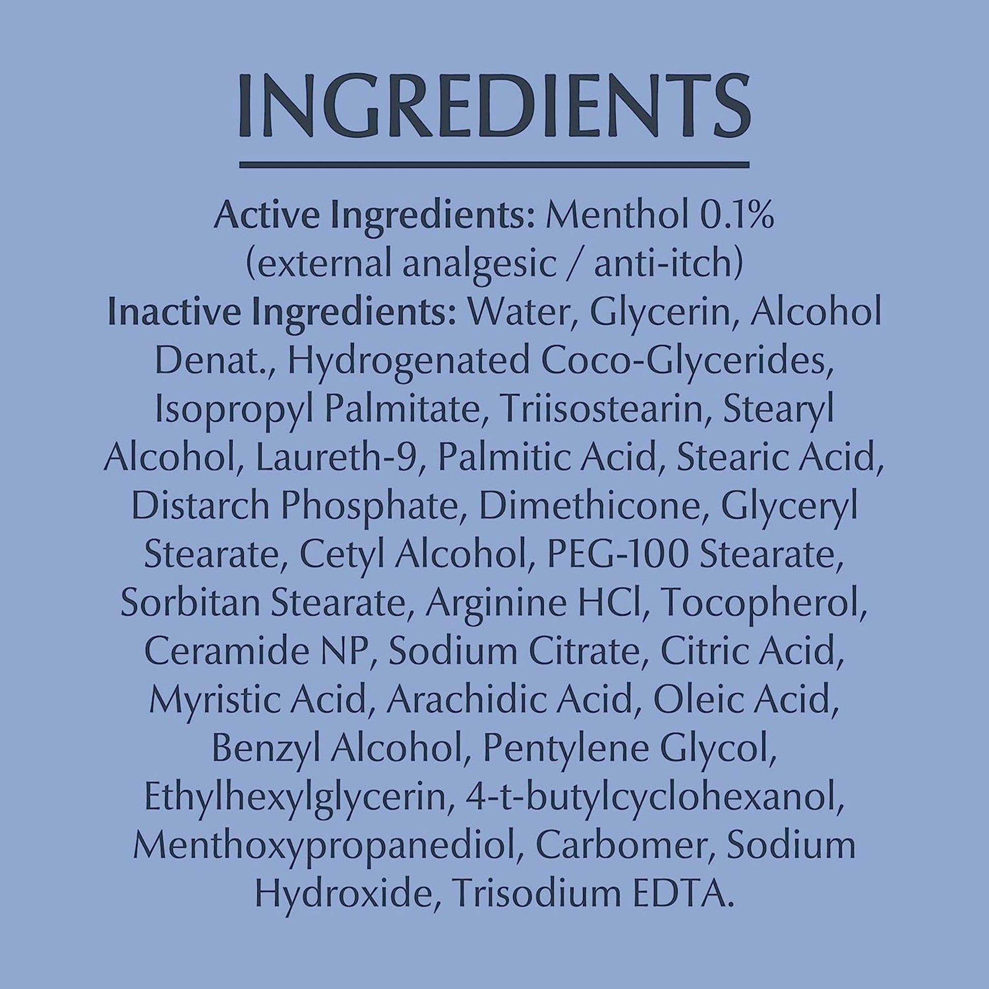 - Eucerin skin calming body lotion is formulated with menthol to provide instant relief from the itch caused by dry skin