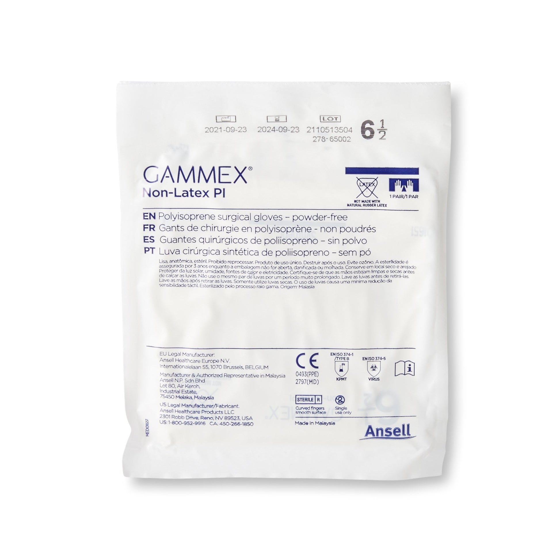 GLOVE, SURG PLYISO 6.5 STR2 SMTH (50PR/BX 4BX/CS)