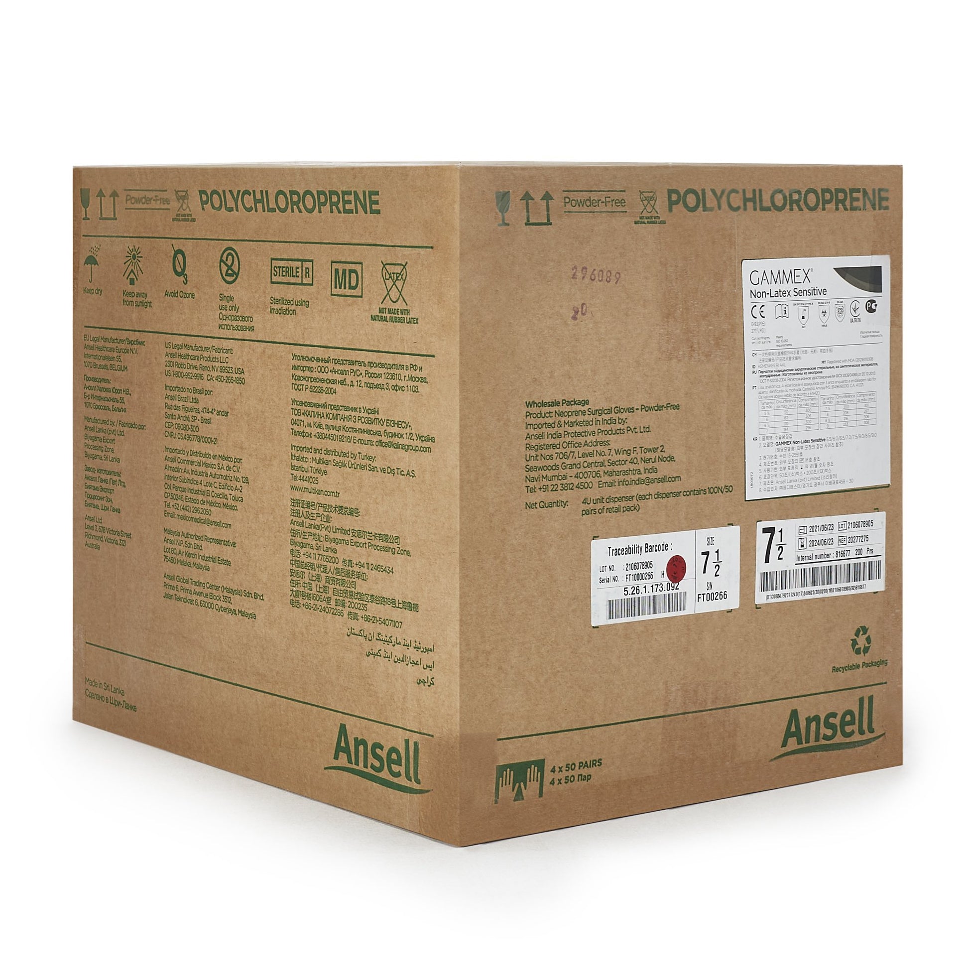 - Easy donning and doffing: Internal coating of Gammex Non-Latex Sensitive sterile gloves facilitate both damp and dry hand donning.